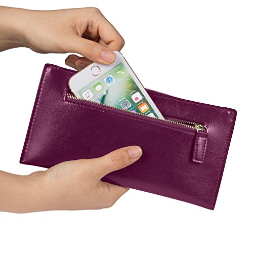 Binding : Apparel Product Description FEATURES: Made of high quality genuine leather. Water resistant and durable with skilled line finish. Classic, beautiful, gorgeous and stylish design. Suitable for various occasions, easy to carrying. Large enough, practical and perfect for daily use. CONSTRUCTION: 8* card slots, enough space for cards; 1* full cash compartments that holds some cash comfortably; 1* coin slot for your small charges; 1 *cell phone compartment for 5.5 inch cellphone; 1*back zipper pocket for your other little items; Attention Please: 1.?Actual product colors may differ slightly from colors on web photos depending on your monitor settings. 2.?Please confirm the dimensions according to our description instead of the photos and allow about 1" differs due to manual measurement. 3. Each wallet will be check carefully before shipped, but it's still very hard to make everyone satisfied.If you have any problem with the bag, contact us, we will try our best to solve it for you.