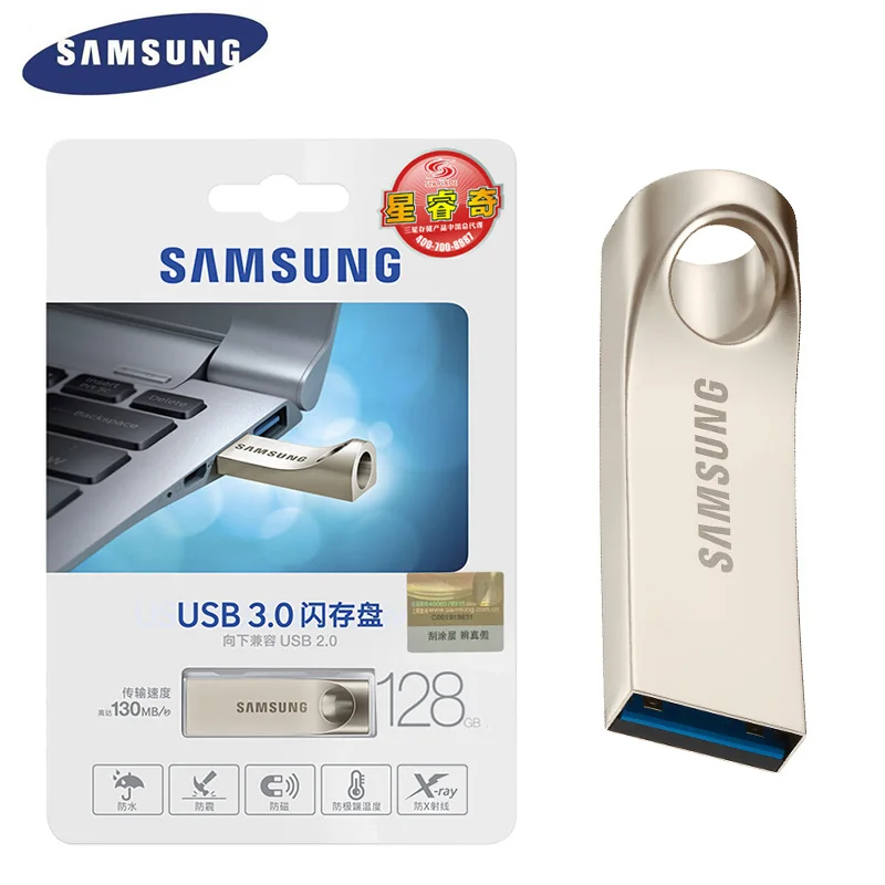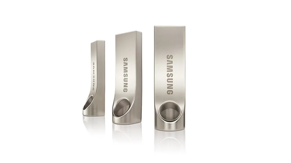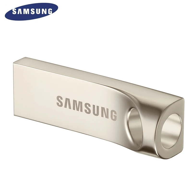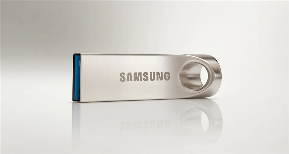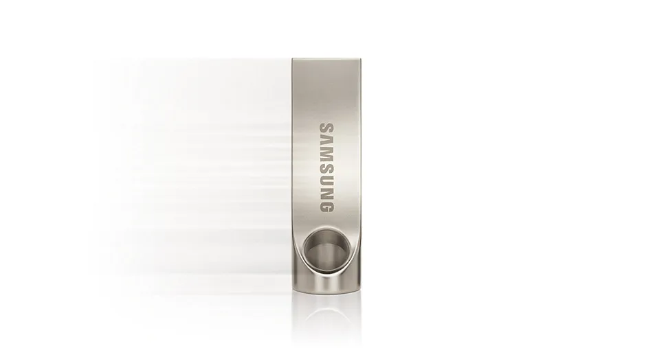 A unique, sophisticated design, the sleek Samsung USB drive is an appealing combination of form and performance. This streamlined metallic-based design appeals to your aesthetic side, while the larger key ring hole is practical and can prevent it from being lost.