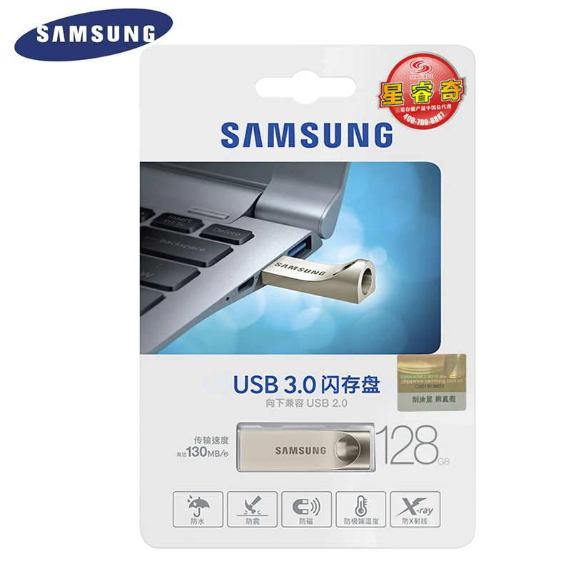 Samsung reliability safeguards your data. The newest in the Samsung family of memory products, this USB flash drive offers NAND flash technology, 5-year warranty, and 5-proof technology that makes your memory storage water proof, shock proof, temp proof, magnetic proof, and X-Ray proof. It’s all the quality you’ve come to expect from Samsung, the trusted name for memory.