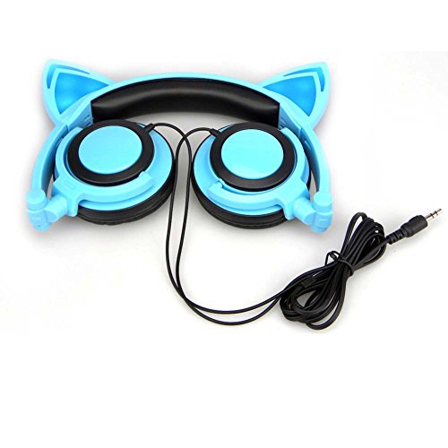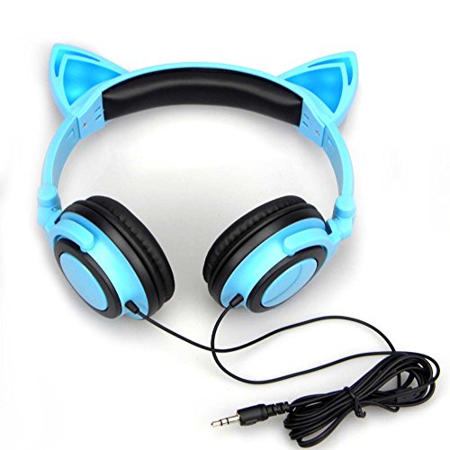 -. Feature : Cat Ear Headphones with Glowing Blue Lights / Light Modes: Off, On, & Blinking, light up (blue) - and you can either choose to use the solid light setting or blinking lights setting by " ON/OFF" botton on the Cat Ear / On/Off Switch Located Behind Left "Cat Ear" / Cable Approximately 5 Feet Long / Connectors: 3.5mm