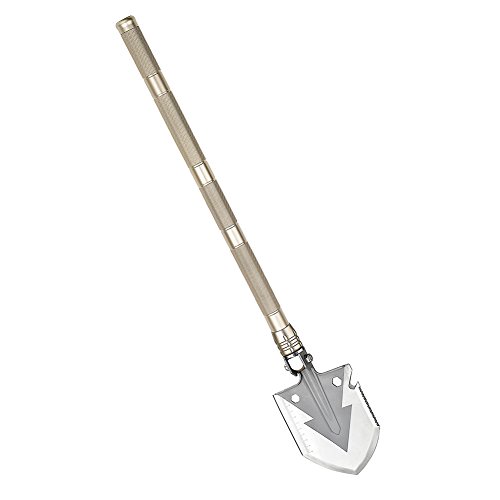 High Quality Material - The handle part of the shovel is made of Aluminium alloy carved with annular knurl for better anti-slip function. The head, made of high quality Carbon Steel.Gift wrap of Tourniquet and Waterproof bottle whistle.