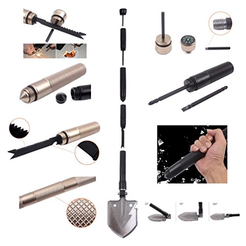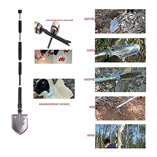 Multifunctional Design - It is designed and produced according to self-driving experiences of many experienced outdoor sports lovers, assembling practicability, functionality and security in it. folding camp shovel with more than 15 functions survial tool set including Compass, Magnesium Rod, Screw Driver, Hammer, Multifunctional Knife, Shovel Head and extension handle.