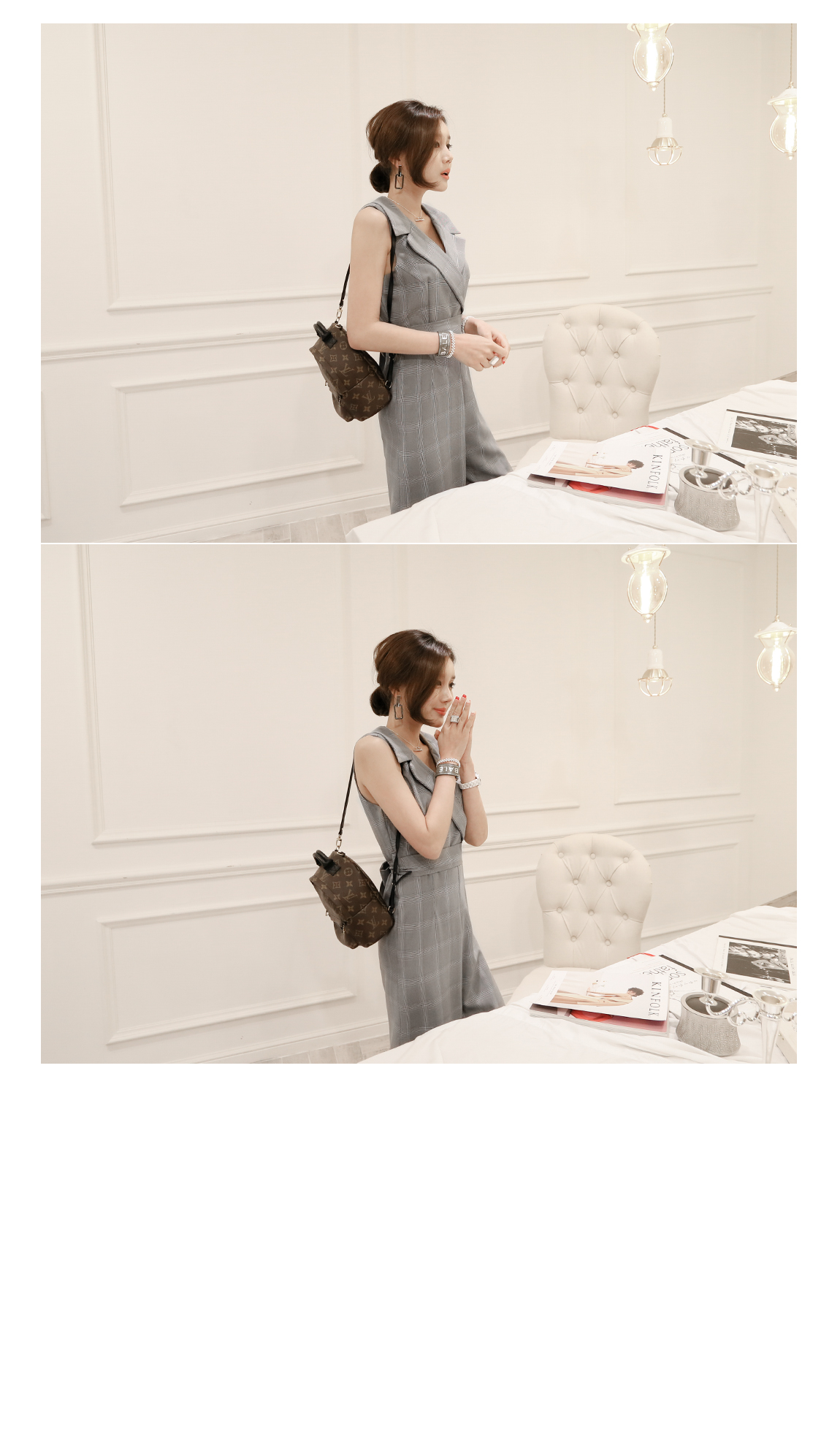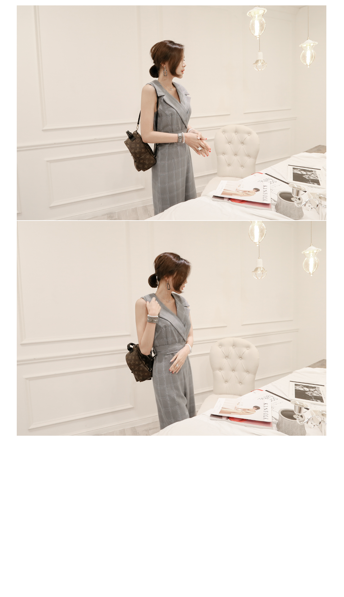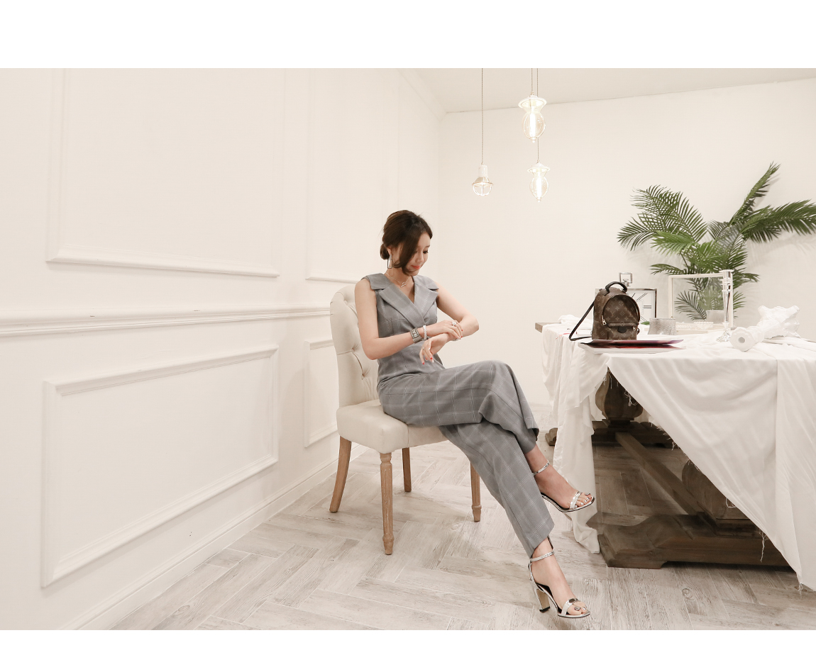 トレンディなテーラーカラディテールとチェックのパターンに洗練し、