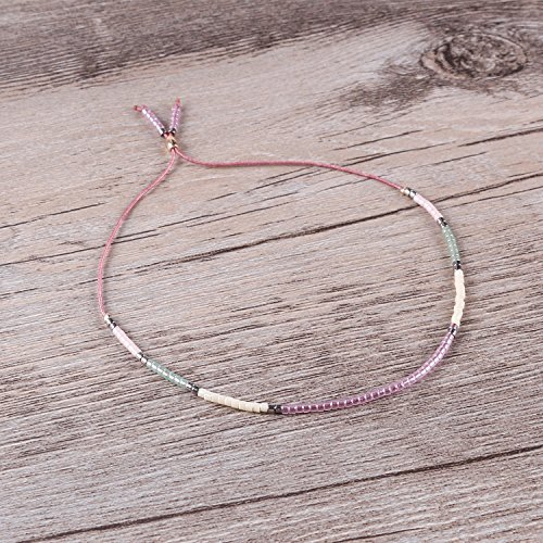 KELITCH Bohemian Armband Rocailles Perlen Handmade Mehrfarbig Zart Schnur Freundschaftsarmbander - Rosa