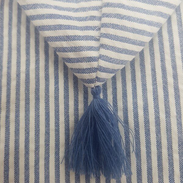 시원한 시어서커 소재의 꼬깔점퍼로 다양한 아이템과 코디가 용이한 아이템 꼬깔 끝 테슬 장식으로 포인트를 줌