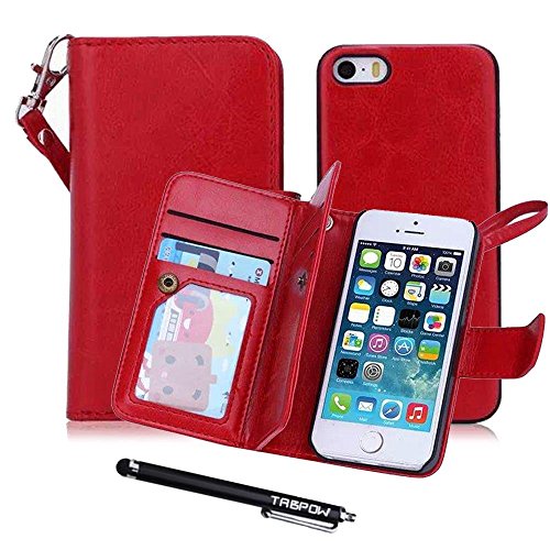 iPhone 5C Case, iPhone 5C Wallet Case, TabPow [Wallet Case] 9 Card Holder [Detachable Wallet Folio] PU Leather Flip Case With Lanyard Strap For Apple iPhone 5C