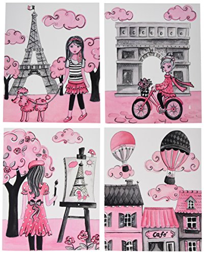 The Kids Room By Stupell 4 Piece Quadtych Wall Plaque Set, A Girl In Paris, Proudly Made in USA