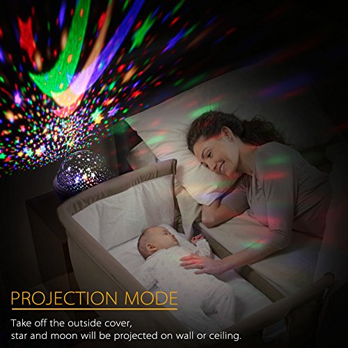 Easy To Use:Take Off The White Cover,Star And Moon Will Be Projected To Every Corner Of The Wall Clearly,Be Suitabled For Party, Birthday, Wedding And Home Decoration, Take On The White Cover Also Can Put In The Bedroom And It Will Be Make You Relax Until Sleep,It Can Be As A Table Lamp When You Remove The Star Cover And Then Put On The White Cover To Use Directly.