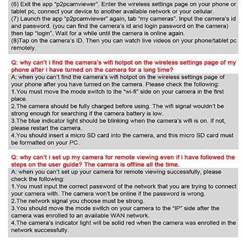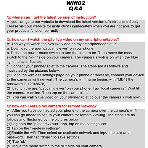 WIFI WIRELESS: 15~20 meter WiFi distance,Pass word management to protect your privacy,Real-time Video Recording