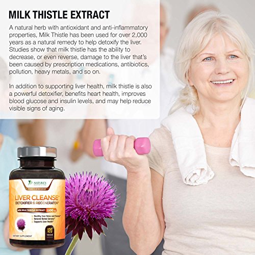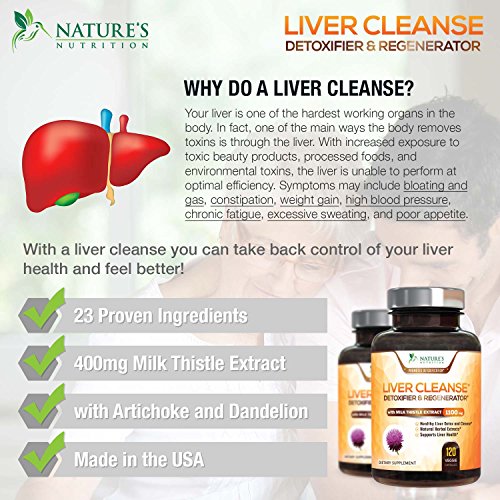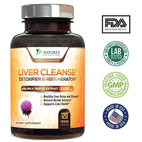 Nature's Nutrition Liver Cleanse Detoxifier Regenerator contains essential plant extracts that have been shown to support liver health, including Milk Thistle, Turmeric, and Dandelion Root. This premium, all-natural blend is rich in antioxidants and may also improve digestive health.