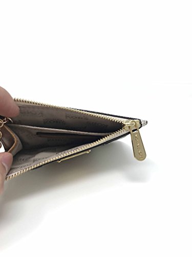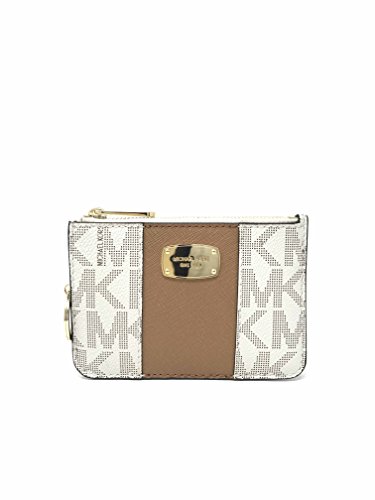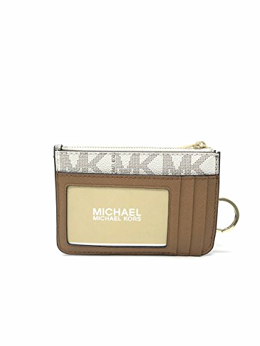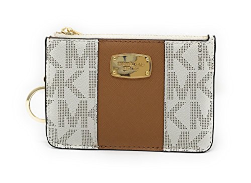 Michael Kors Center Stripe Small Top Zip Coin Pouch Card Case with ID Window, Vanilla/Acron