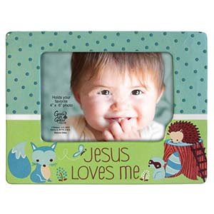 ReleaseDate : 2015-06-12 Studio : Enesco Gift Publisher : Enesco Gift Binding : Baby Product Product Description Jesus Loves Me photo frame holds one 4 x 6" horizontal photo. Fun art from Heather Rosas with a blue fox, raccoon and a hedgehog to celebrate baby. 0