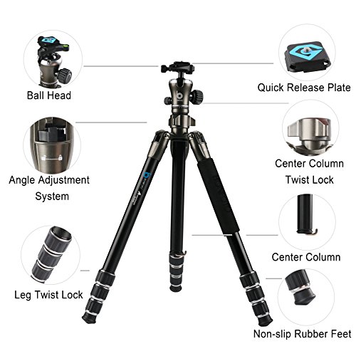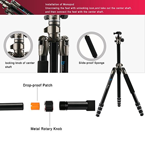 Compact & Sturdy: Made of aluminum alloy, it performs stable with 4-section legs; it can be folded to 15.4", compact for carrying around; the max. load capacity is 17.6lbs (8kg), so it's worry-free for adding heavy lenses.