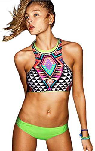 | IF FEEL Womens Triangle Green Low Waist Two Piece Bikini Bathing Swimsuit |