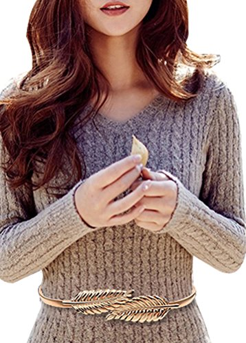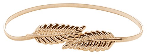 Womens Metal Leaves Elastic Stretch Waist Belt
