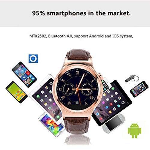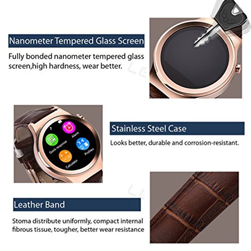 -. Feature : Nano-glass Screen&Stainless Steel Case / Battery:380mAH rechargeable battery,Standby time:Up to 120Hours, Talking Time:Up to 3 HoursCharging Time: About 1-2 Hourssupport max 16GB TF Card(memory card not included) / Smart Wake: To Raise your hand to wake the screen; it's convenient / Support hands-free call, play the music in your phone, sync Phone book/SMS/calls, ring reminder when your smartphone receive a message (including Facebook, Twitter, WhatsApp, Skype, and so on) / Scratchproof design, the perfect combination between Fashion design and excellent quality