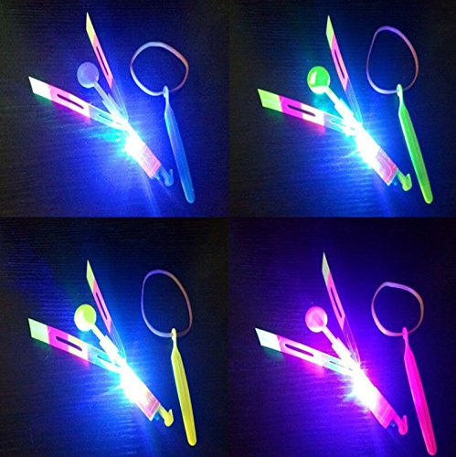 Studio : TUOBU Publisher : TUOBU Product Description Launch the helicopter into the air with the rubber band, watch it fire into the sky lit up by its LED light. When the helicopter Reaches maximum height its blades open and it drops to earth again while spinning very fast. Best used at night so that you can see its light working. BEST USED AT NIGHT Color:Mix color Party Fun Gift Arrow Rocket Flying Toy Size:Approx.15.5cm x 2cm /6.1" x 0.79" (L*W)