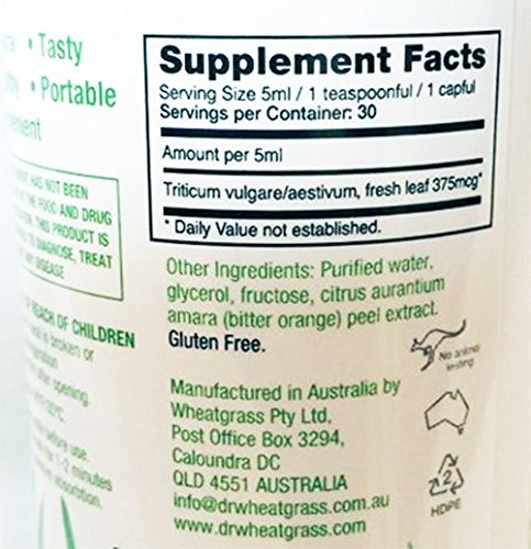 All natural organically grown wheatgrass, pure, concentrated, no alcohol, gluten-free, Tasty tangy citrus flavour with no wheatgrass odour or taste (Supershots is an extract- slightly brown clear liquid)