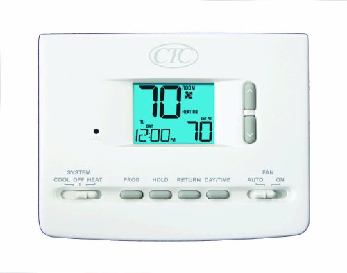 CTC 61152P Wall Thermostat, 1 Heat/1 Cool, 5/2 Day Programmable, 1.5 Square Inch Display