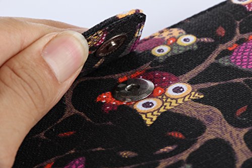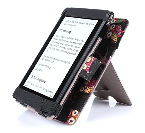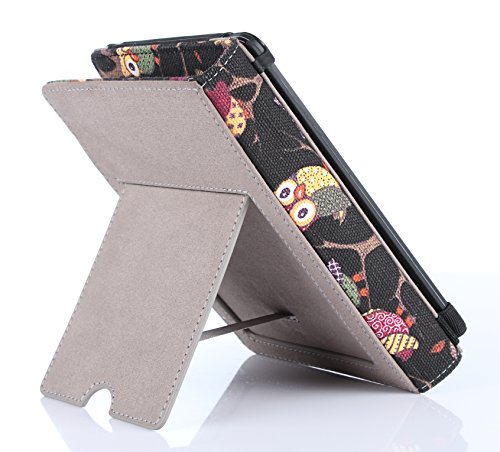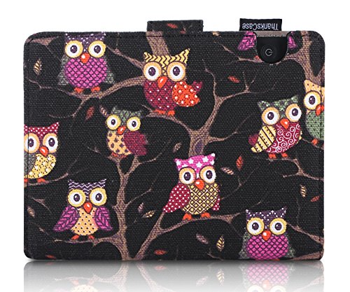 Kindle Voyage Case by Thankscase Protective Black Owl Canvas Fabric Case Cover for Kindle Voyage (2014 Release) with Stand Feature Only for Kindle Voyage. (Black Owls).