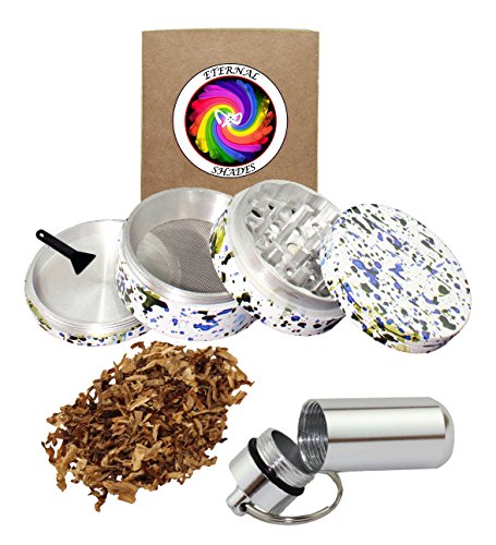 SHADES COMBO - 4 Layer Herb Spice Grinder (PSYCHEDELIC WHITE) with Aluminum Pill Case Key Chain (1.65" Herb Grinder)