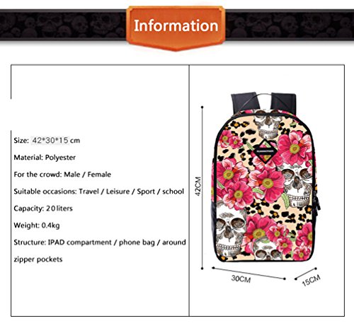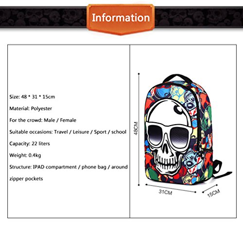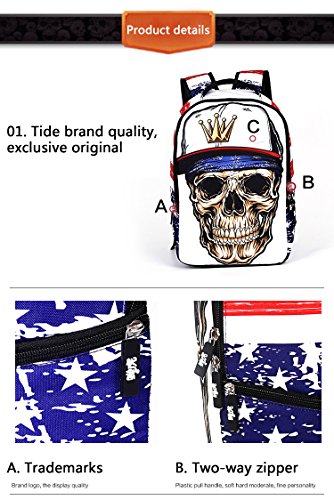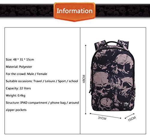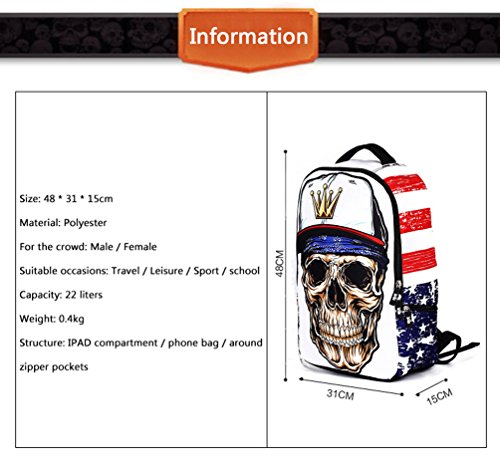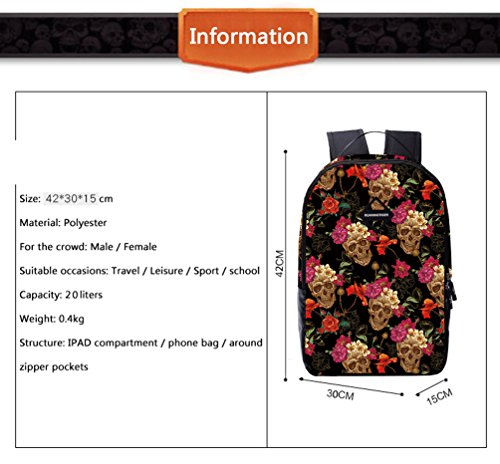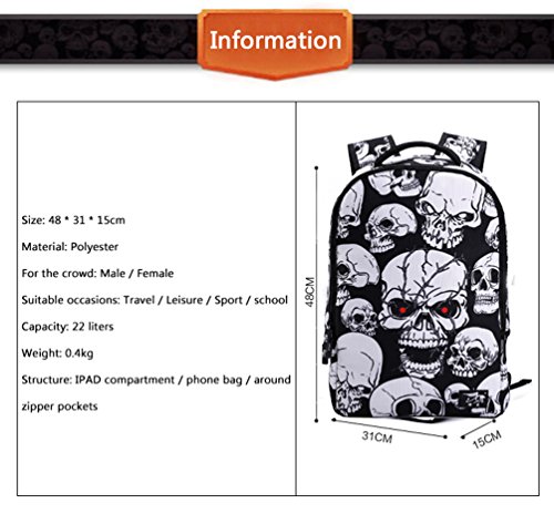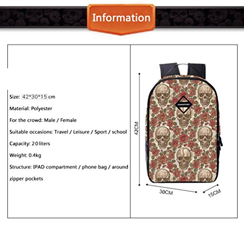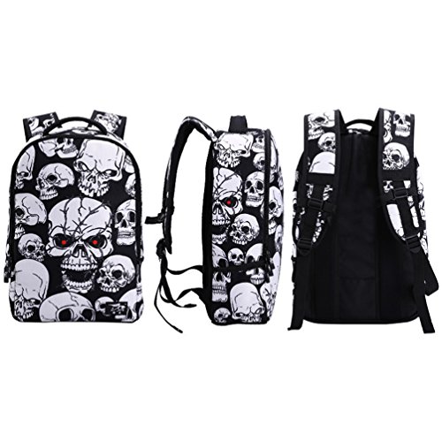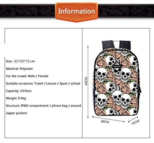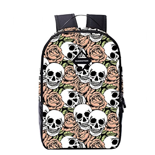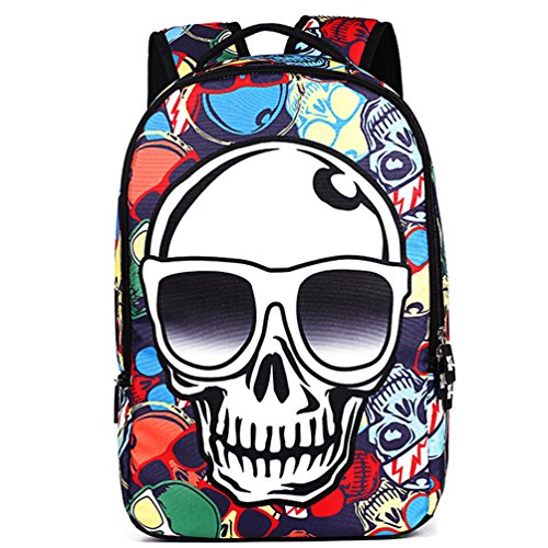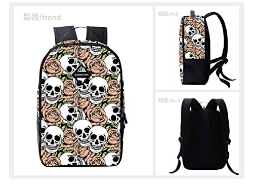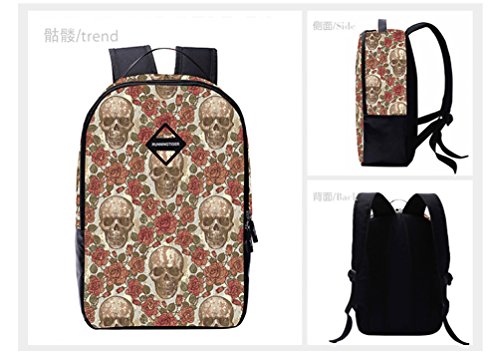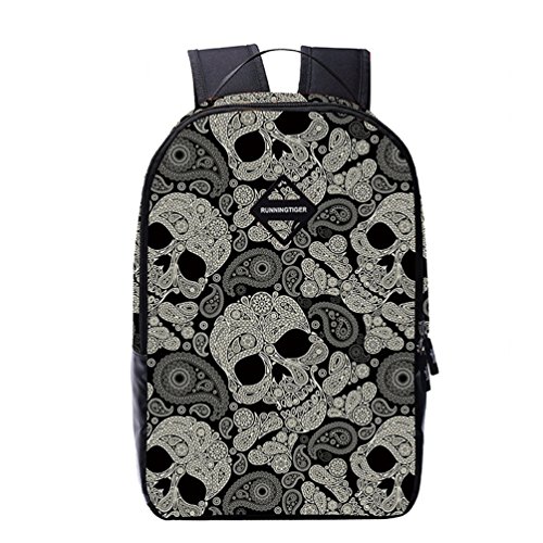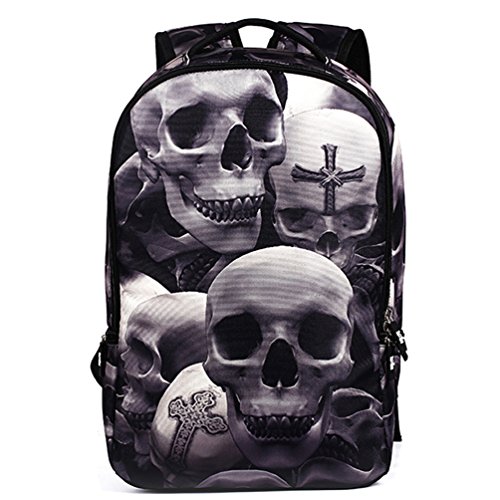 | HANRUI Personalized 3D Skull Studded Casual Travel Laptop Backpack School Bookbags |