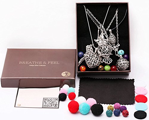 - WHOLE AROMATHERAPY DIFFUSER NECKLACE COLLECTION AND ACCESSORIES - It Comes With All Necklaces for the Benefit of Variation. You Will Get Variations on the Chains, They are All Removable and Interchangeble, on the Lava Rocks With 7 Different Colors, on the Chakra Beads With All 7 Colors, on the Cotton Beads With 5 Different Colors and on the Cross, Leaf, and Wings pendants. They are all Removable.