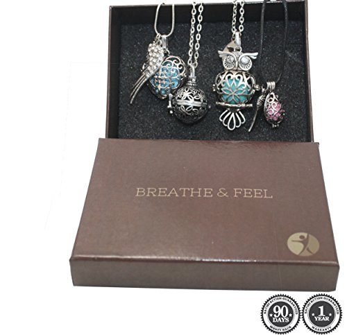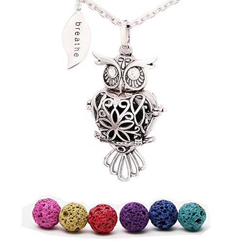 Premium Aromatherapy Essential Oil Diffuser Necklaces and Seven Chakras with Lava Stones, Cotton Beads, Chakra beads and Pads. Owl, Heart, Teardrop and Round Styles.