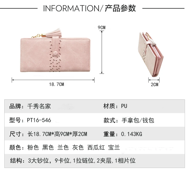 Wallet Color:Black,Pink,Gray,Light Blue,Deep Blue,Watermelon Red
