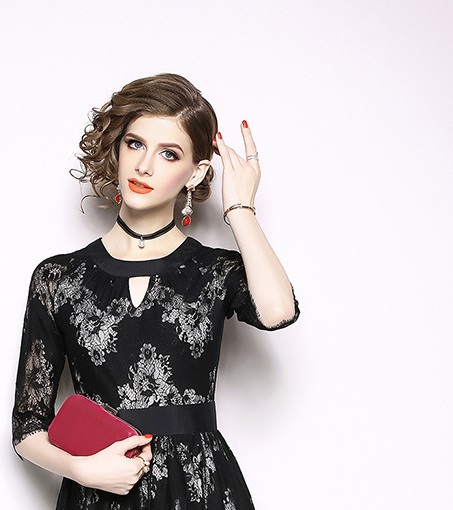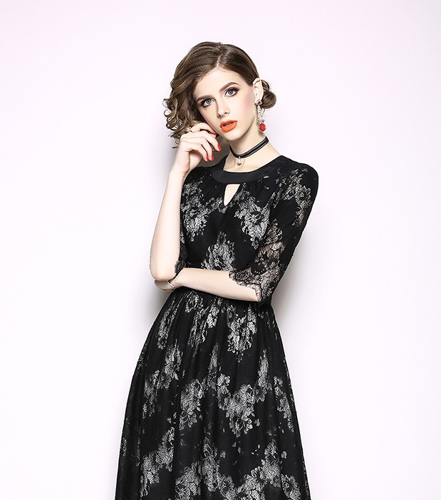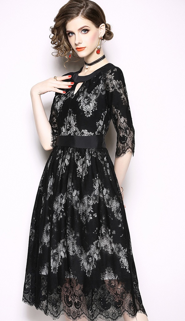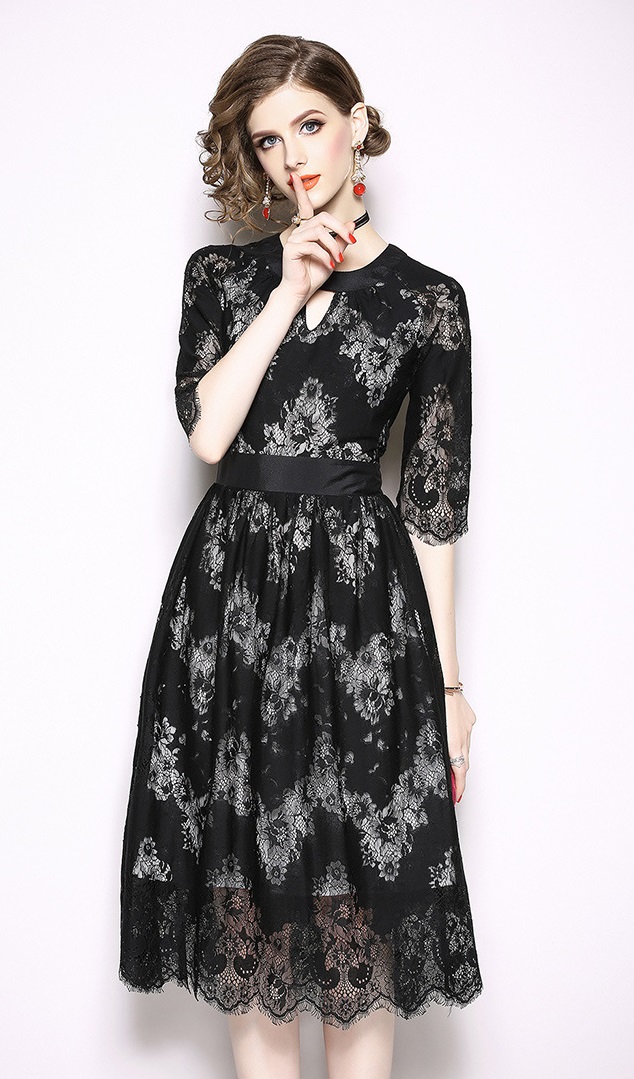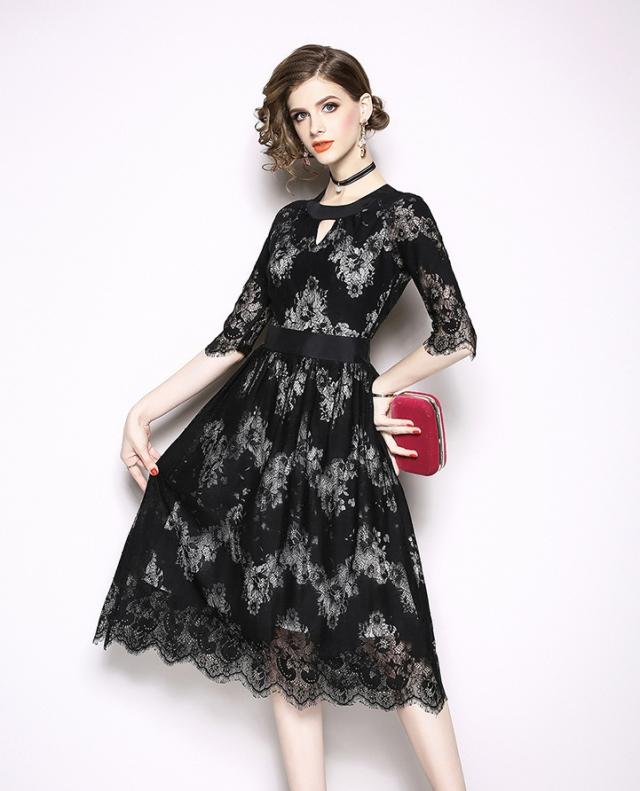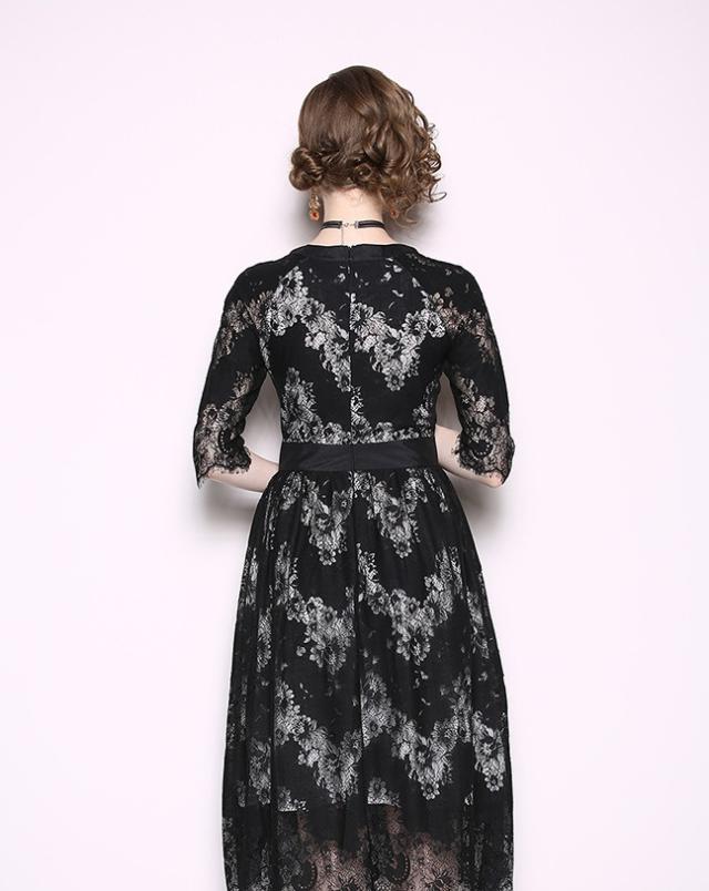 パーティーやお呼ばれにも使えるブラックレースワンピースです。