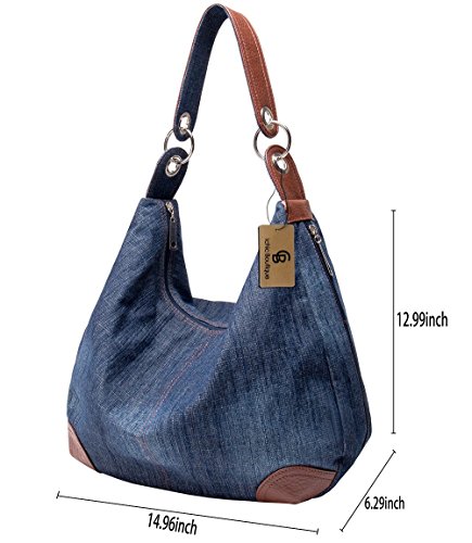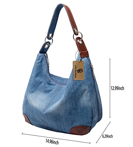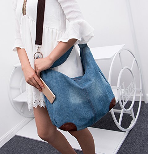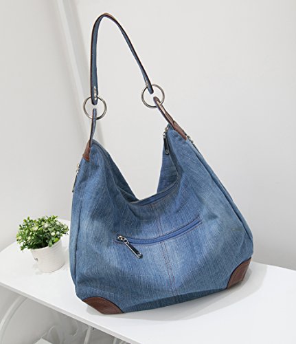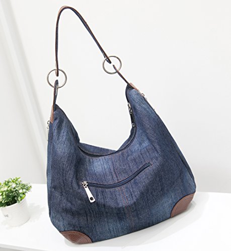 -. Feature : Material: High Quality Denim and Leather Hobo Tote Womens Purse Handbag,the Hardware is Silver. / Size(L x H x P) - 14.96in * 12.99in * 6.29in / Easily carry your book, mobile phone, wallet, cosmetic, umbrella and other daily things. / Large Capacity - Can Content a lot of Your Daily Essentials; Fashionable Style, Suitable for any Occasion Like Working, Travel, School, Shopping, Dating and so on. / Distinctive color slection and simple style, it fits in seamlessly with any look.
