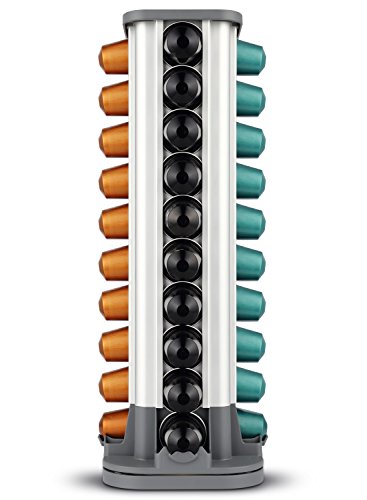 HOLDS 40 NESPRESSO CAPSULES: Miusco Capsule Carousel is a rotating carousel rack that is designed to hold 40 original-size Nespresso coffee pods. The 4 sections hold up to 10 capsules each.