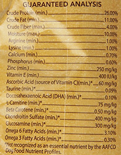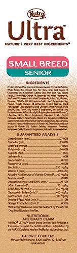 -. Feature : For small breed dogs 11-25 lbs and 5 years & older / Natural source of glucosamine and chondroitin for mobility / Rich in beta carotene for strong eyesight / Promotes a healthy immune system and lean muscle mass / No wheat, yellow corn, artificial flavors or colors