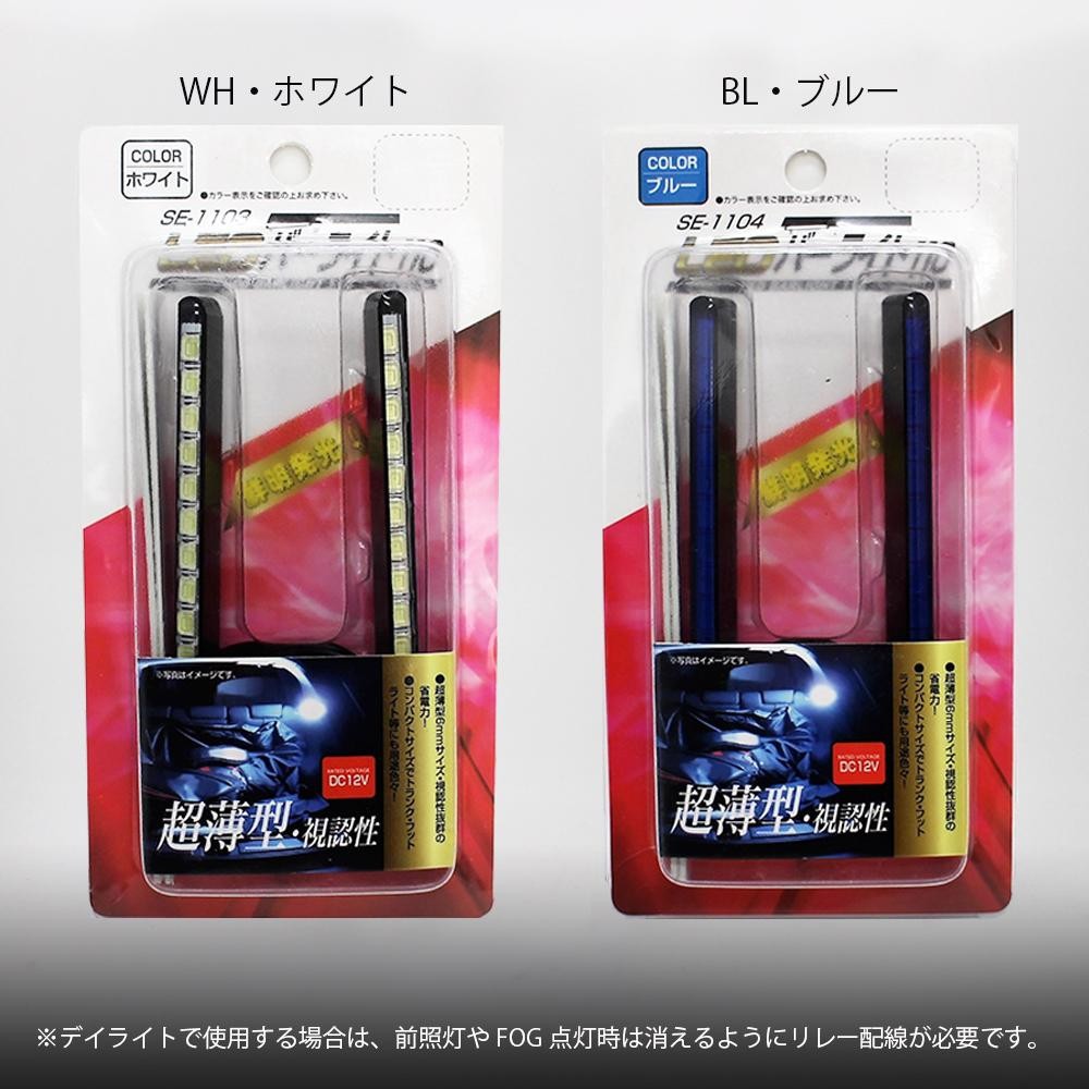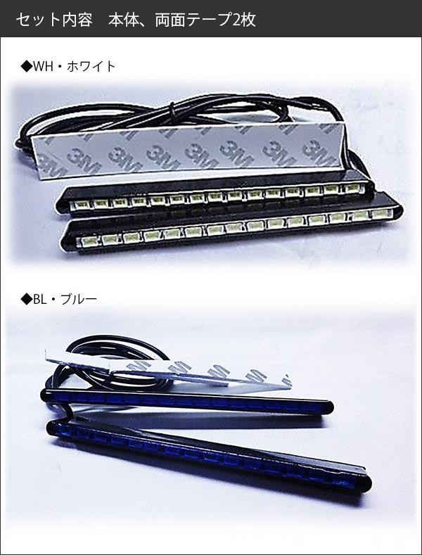 デイライト、フットライト、ライセンス、ドア足元ライト等、マルチな取り付けが可能です。 製造国:中国 素材・材質:耐熱樹脂、他 商品サイズ:長さ:115mm、厚さ:6mm 仕様:明るさ:375lm消費電力:200mAコード長:450mm防水仕様 セット内容:本体、両面テープ2枚 ※サプライヤー直送品  ご注文後5~6営業日後の出荷となります【商品名】サンキ LEDバーライト 110 BL・ブルー・SE-1104