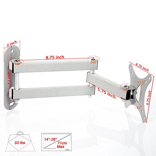 -. Title : Henxlco Full Motion Articulating Tilt Swivel TV Wall Mount Bracket Flat Screen Panel Monitor LCD LED 14 17 19 20 22 23 24" , some up to 27¡±, VESA 75x 75mm, 100x100mm