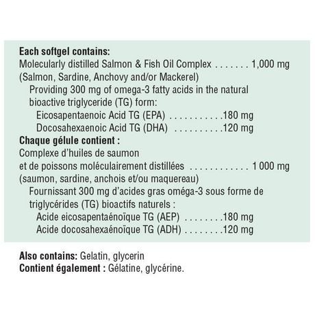Premium Omega-3s in a bonus format! Our newest Omega-3 formula provides essential fatty acids for overall health. Made from the finest oils of salmon, sardines and anchovies, this supplement contains EPA and DHA in their triglyceride form, which is more stable and effective in supporting cardiovascular, nervous system and dermatologic health. These pharmaceutical-grade Omega-3 oils have been purified using a gentle molecular distillation process to remove all traces of mercury and other micro-contaminants.Feature