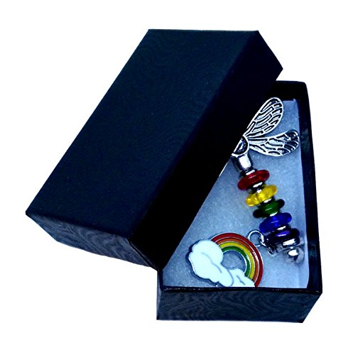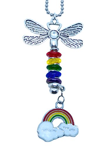 - Dragonfly and Rainbow Charm Length Hang at 3 Inches and Total Length with Ball Chain is 7-1/2 Inches
