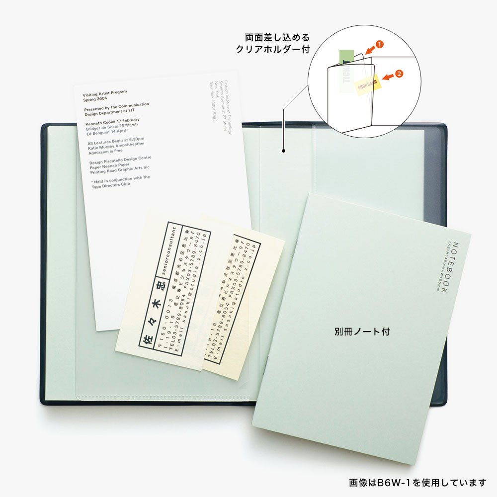A diary aimed at business people with a convenient clear holder and separate notebooks that can put information in and out smartly.