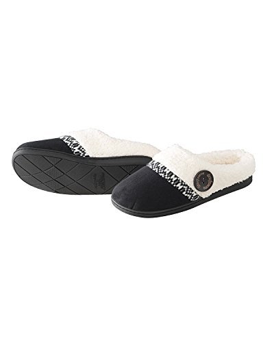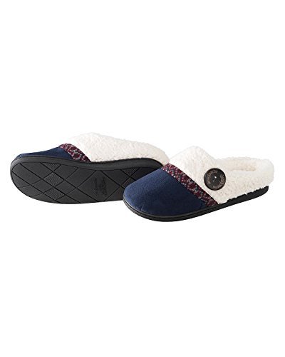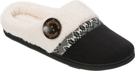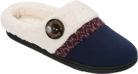 Product Description Stay snug and warm wearing the Dearfoams Microsuede Clog Slipper with Fairisle Detail. These clog slippers showcase a mix of fabrics and a large wooden button. That peek of Fair Isle knit lends a lodge-worthy Nordic vibe. 0