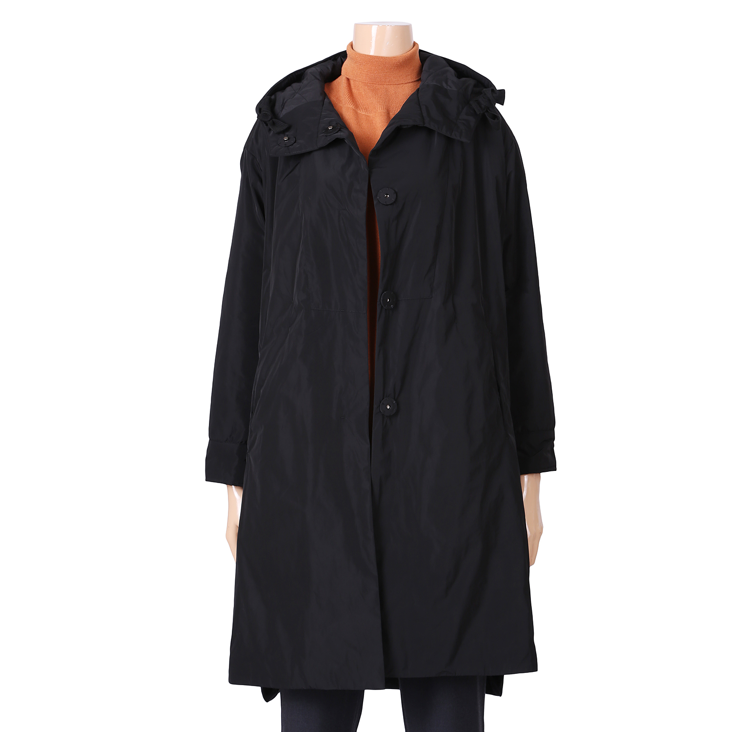이 제품은 A라인의 편안함과 체형커버가 되는 박스형으로 후드의 세련됨과 롱기장의 세련된 멋스러움과