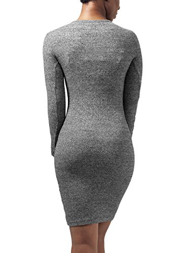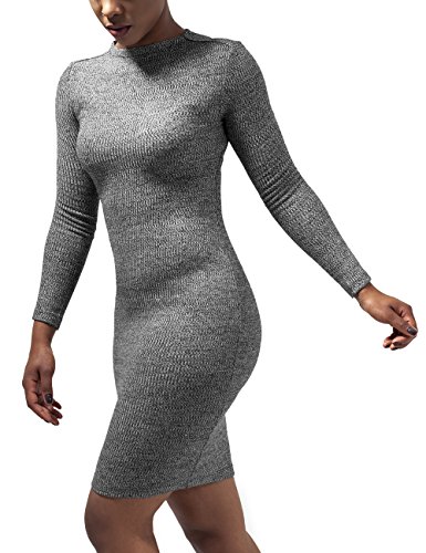 Sei up-to-date mit dem figurbetonten Ladies Rib Dress von URBAN CLASSICS aus angesagter melierter Rippqualitat. Das hochgeschlossene Kleid ist sportlich sowie elegant kombinierbar.