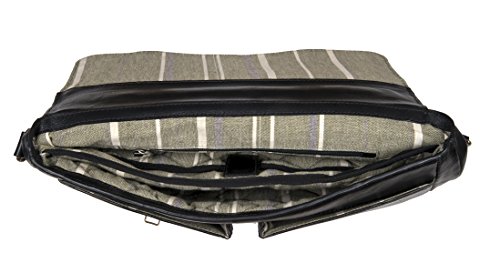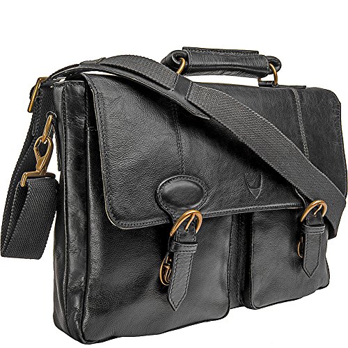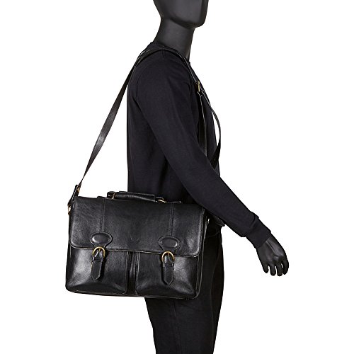 -. Feature : Leather: Hidesign's unique full grain vegetable tanned Classic leather / Lining: Hidesign's signature 100% cotton green striped lining / Closure: Tuck tie closure beneath buckles / Handles & Strap: Adjustable and detachable canvas webbing shoulder strap with leather shoulder pad and leather top handle / Interior Details: Multiple internal zip and slip compartments and pockets to store phones, cables, pens and other miscellaneous items; 2 large front compartments. Laptop compartment is padded
