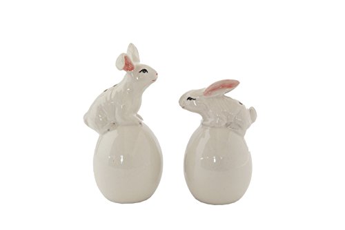 Creative Co-op Stoneware Rabbit On Egg Salt and Pepper Shakers, White