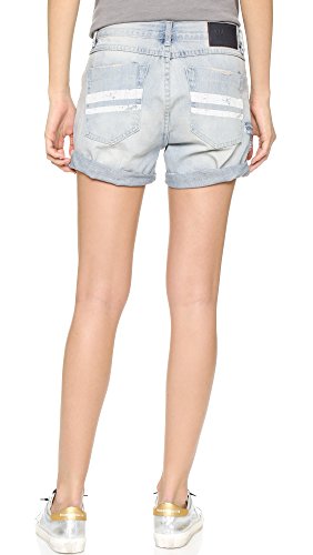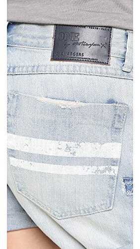 Patched holes lend a well-loved look to these heavily faded One Teaspoon cutoff shorts. Screenprinted stripes accent the patch back pockets. Slant hip pockets. Rolled, fixed cuffs. Button fly.