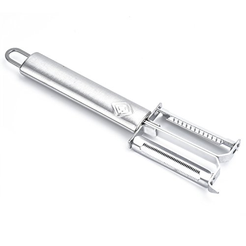 [Product Information]- Ultra sharp peeler blade on one side and vegetable julienne blade on the other side. Excellent vegetable peeler julienne for potato, carrot, cucumber,zucchini,squash,pumpkin