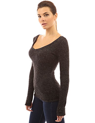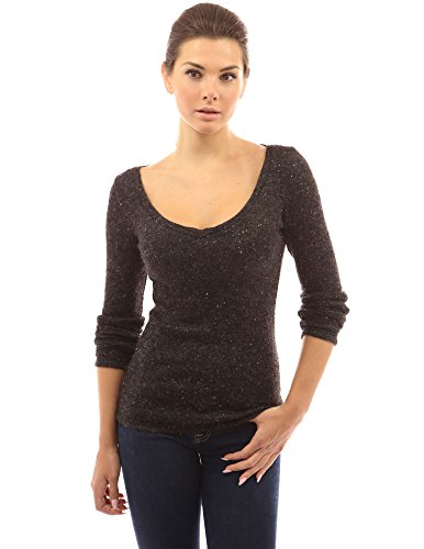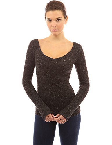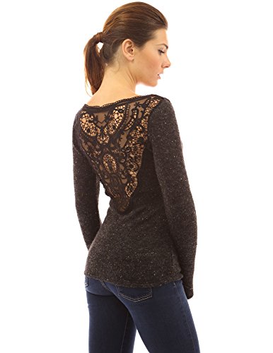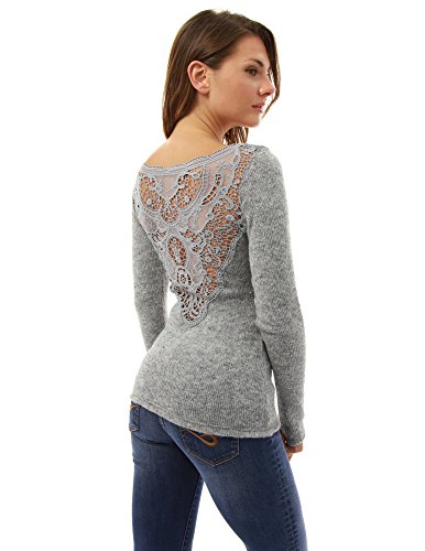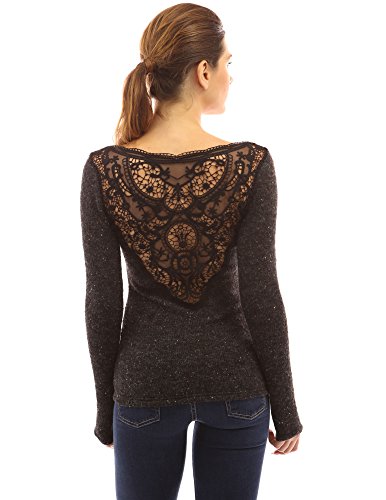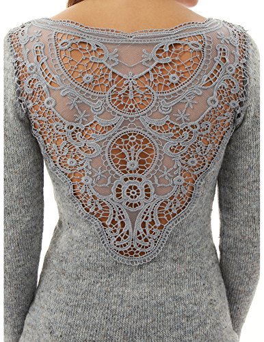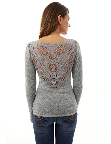 Product DescriptionPattyBoutik V Neck Lace Back Long Sleeve Marled Knit Sweater. Model in pictures is 5 feet 8 inches (173cm) tall wearing size S.0