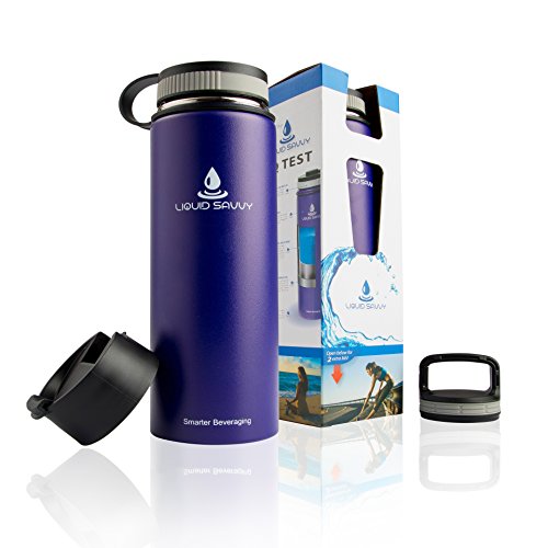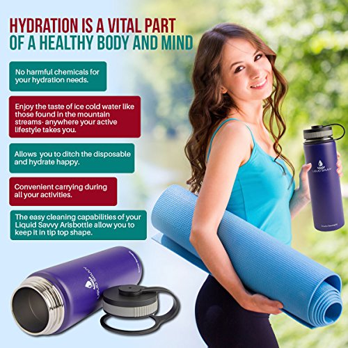 Arisbottle by Liquid Savvy -The smarter 24 oz stainless steel double-walled vacuum-insulated wide mouth hydration water bottle thermos/flask with 2 extra lids - keeps beverages cold or hot for 24 hours/12 hours