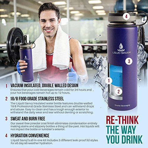 * THE CURE FOR LUKEWARM BEVERAGES - Cold water gets warm and hot coffee cools off. Don't settle for a boring plastic water bottle that doesn't fix either problem. Two premium food grade 18/8 stainless steel walls combined with vacuum insulation ensures that your cold beverages remain cold for 24 hours and your hot beverages remain hot up to 12 hours.