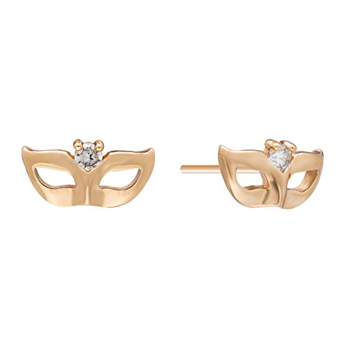 Romantic Time Queen's Mask Zirconia Stone Novelty Style 18k Rose Gold Plated Stud Earrings