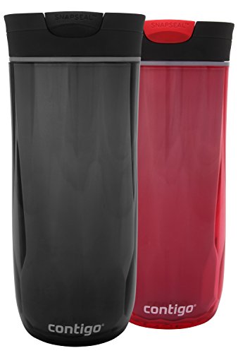 Contigo SnapSeal Byron Double-Wall Plastic Travel Mugs, 16oz, Red & Black, 2-Pack